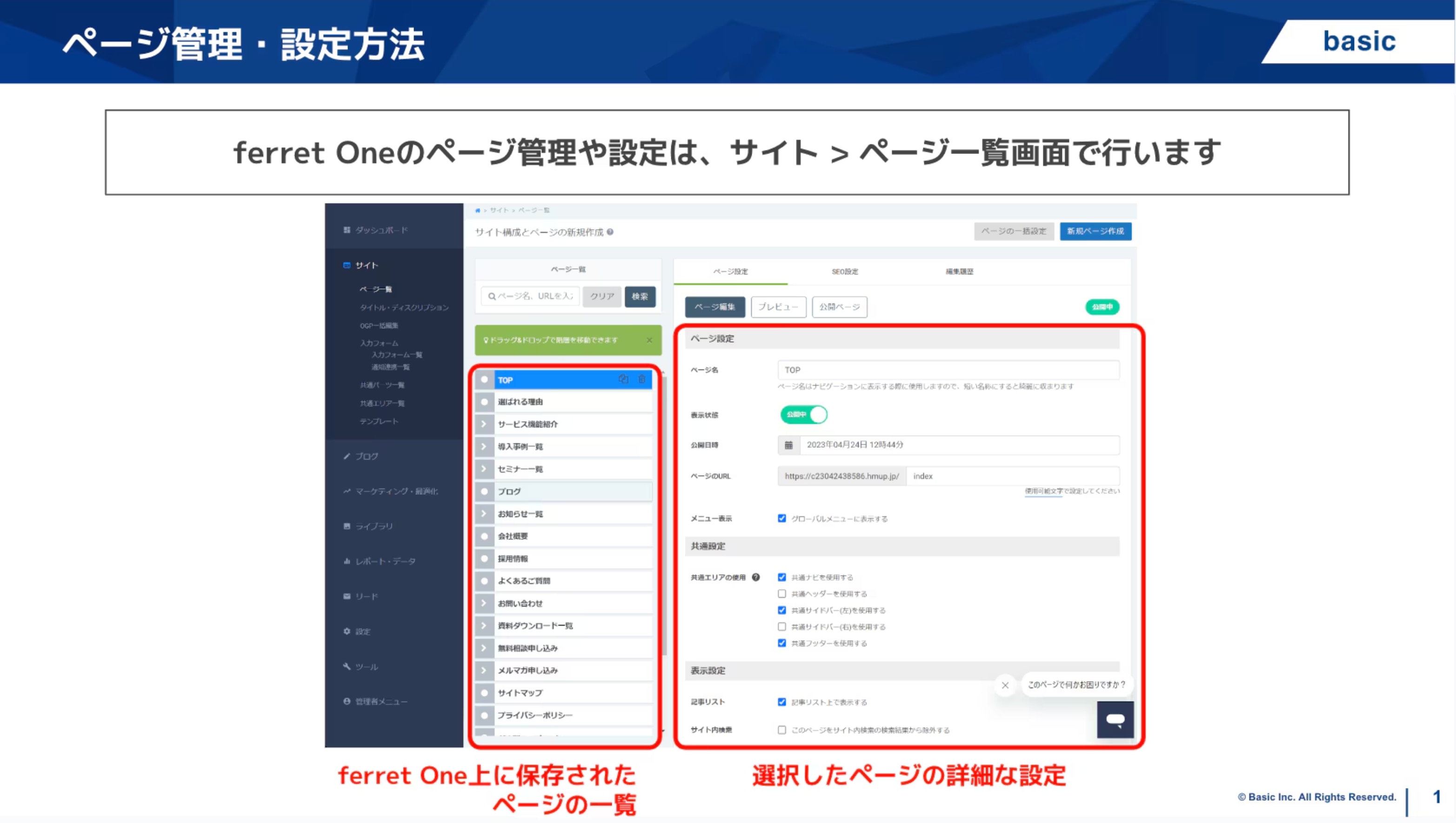 対象ページが「非公開」の状態となっている場合には、公開ページ上には反映されません。